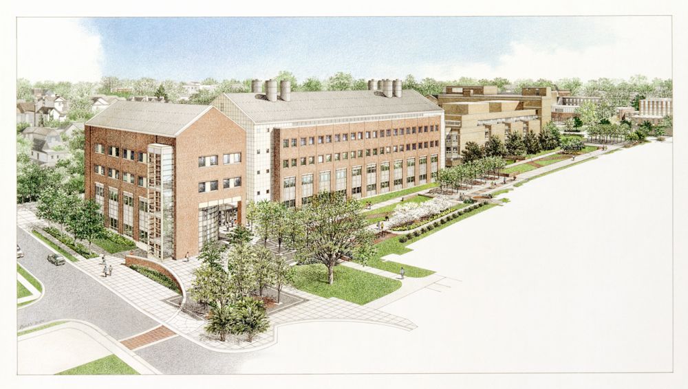This decades-long advocacy effort by faculty and administrators helped to raise awareness amongst the University’s Board of Trustees. Indeed, the Board of Trustees on April 23, 1998 approved the design for a new science laboratory facility. The proposed building was to be located next to the Eberhart Building along McIver Street. The Board of Trustees also approved the concept of closing McIver Street between Carr Street and Walker Ave and turning it into a pedestrian walkway. The landscaped walkway would run the length of the new science building.